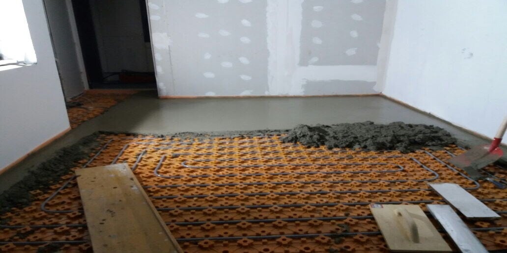 Wassergeführte Fußbodenheizungen mit verschiedenen